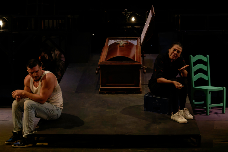 La obra transcurre en la sala de la casa de La Señora Santísima, un barrio caraqueño, junto al féretro de su hijo, Jesús María Carmona, un delincuente juvenil. La trama, estructurada como un relato periodístico, se desarrolla a través de las preguntas de una periodista a la madre del difunto, quien reconstruye los hechos para un reportaje.